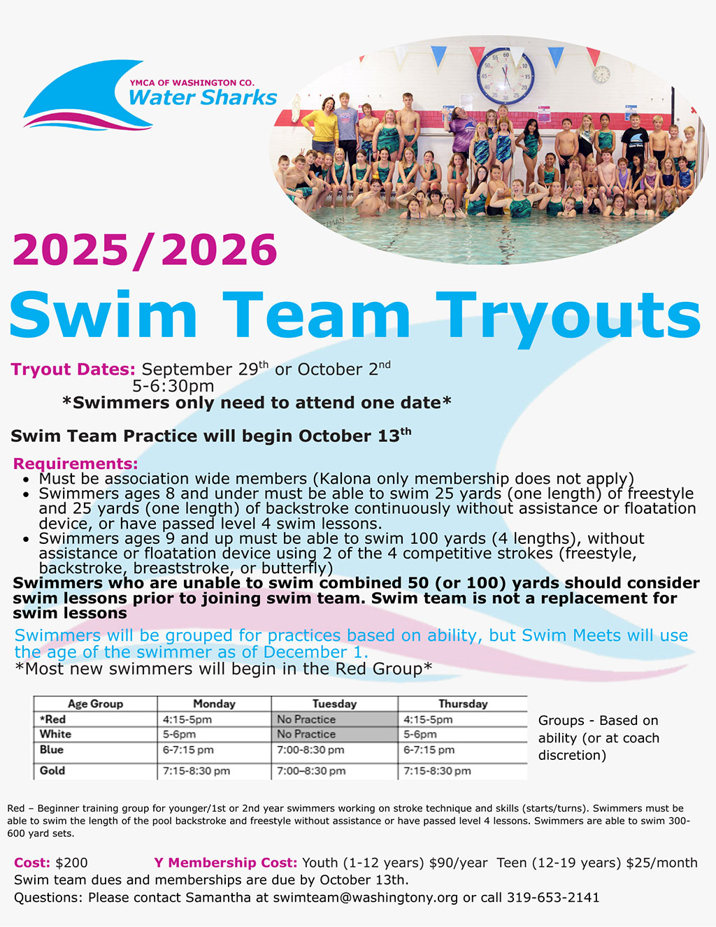 Contact: Samantha Van Houten, Aquatics Manager with questions swimteam@washingtony.org