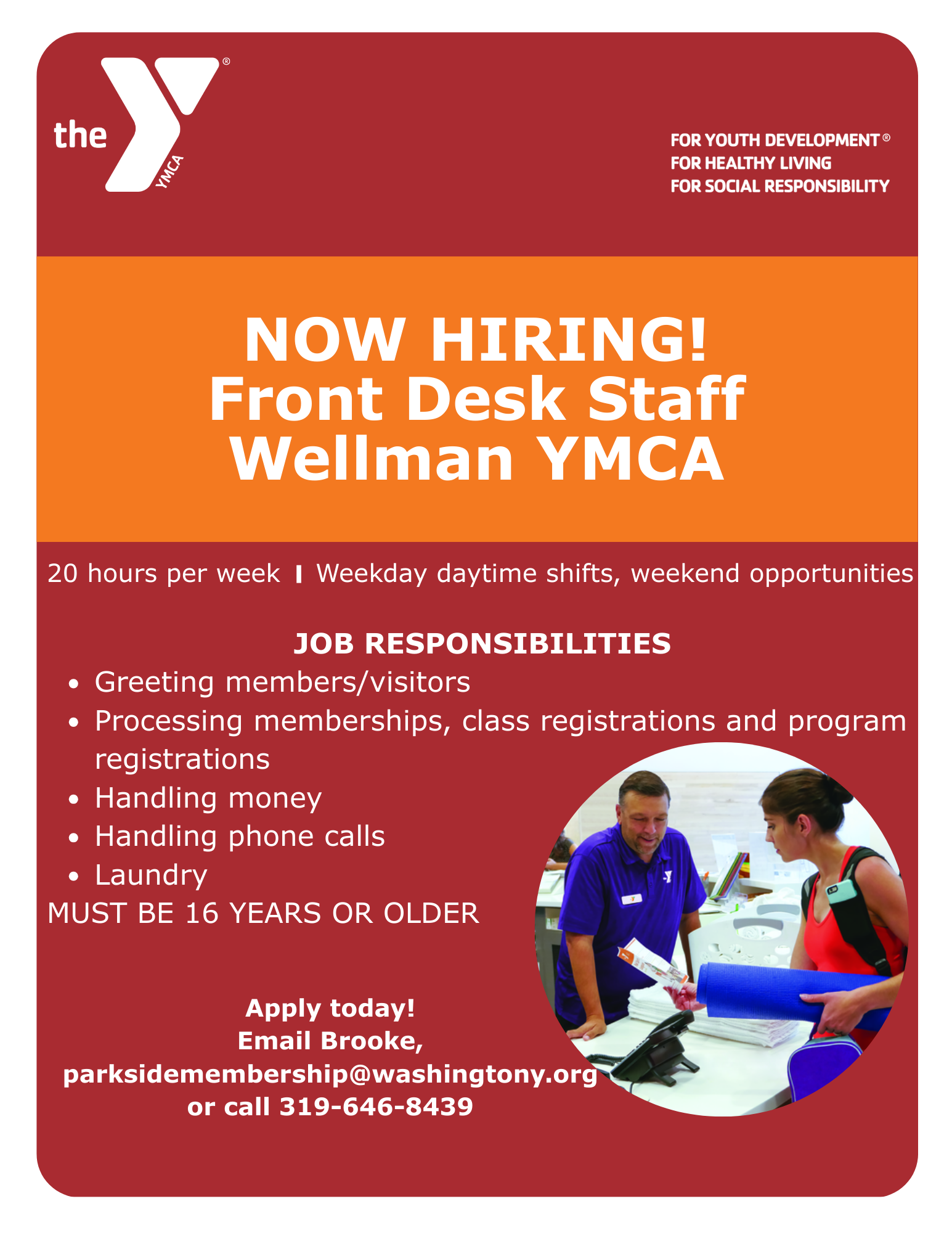 Click the button below to fill out our online application. When you work at the Y, it’s more than a job. You have the opportunity to make an impact in countless lives, each and every day.